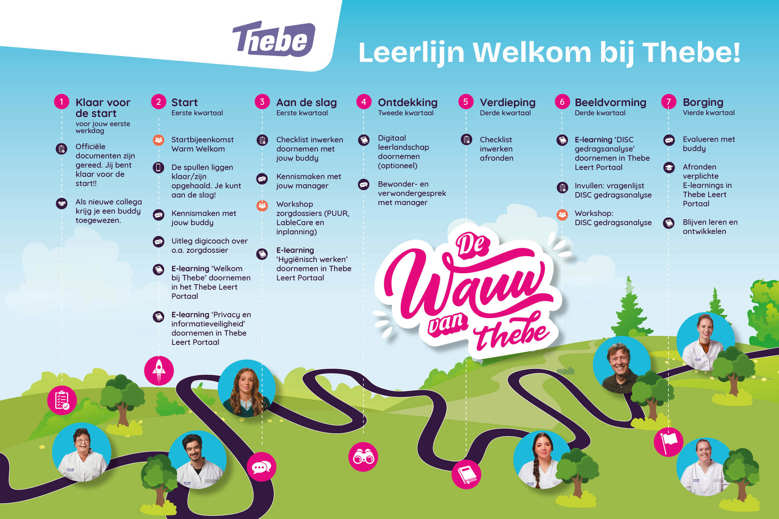 We vinden het belangrijk dat je je welkom voelt en goed wordt ingewerkt, zodat je met plezier kunt starten bij Thebe. Daarom hebben we de Leerlijn Welkom bij Thebe ontwikkeld.