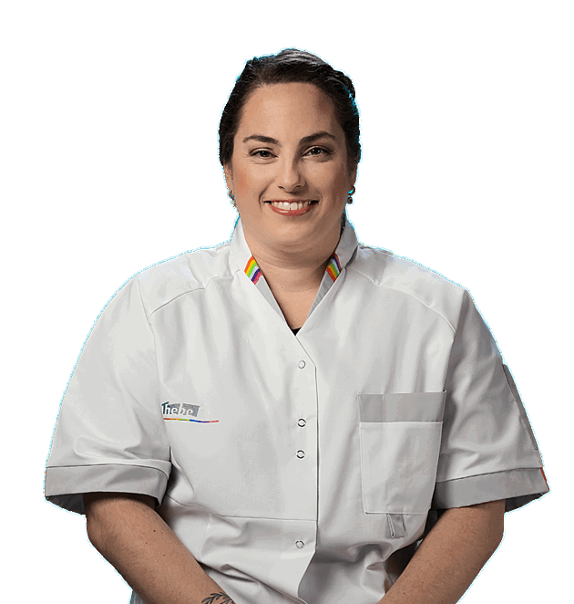 ‘Mijn werk blijft uitdagend omdat ik verschillende facetten van de zorg mag beoefenen. Ik sta in de zorg, maar doe ook een stukje uit zorg en coaching. Die afwisseling maakt voor mij dat ik een fijne werkdag kan hebben. Ik vind Thebe een fijne werkgever en ga graag naar mijn werk.’